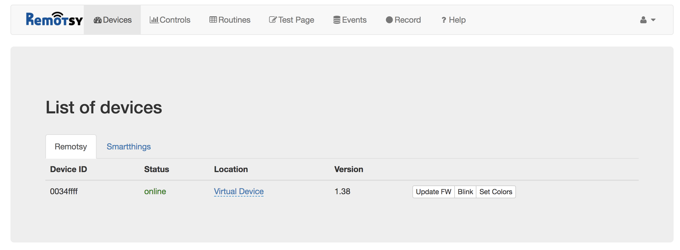 3.- In the main screen, you should see the devices associated with your account, set the location of each Remotsy device, this will help you to recognize the device in the other tabs