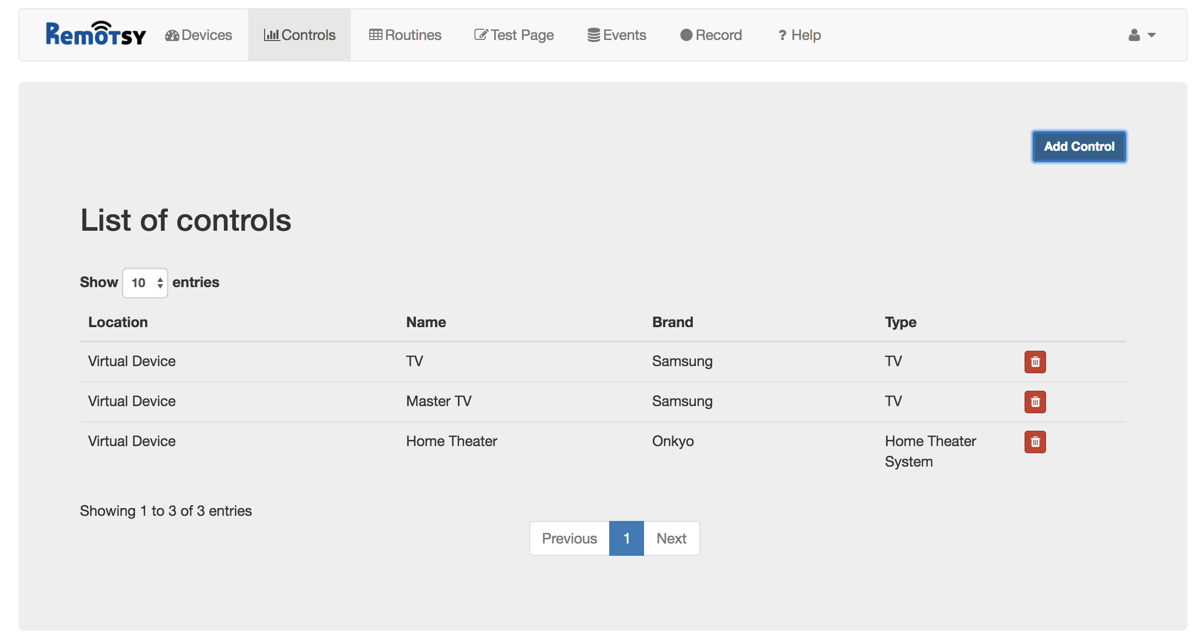 Note: Every time that you add or delete a control on the Remotsy website, you will have to restart the discovery process described above.