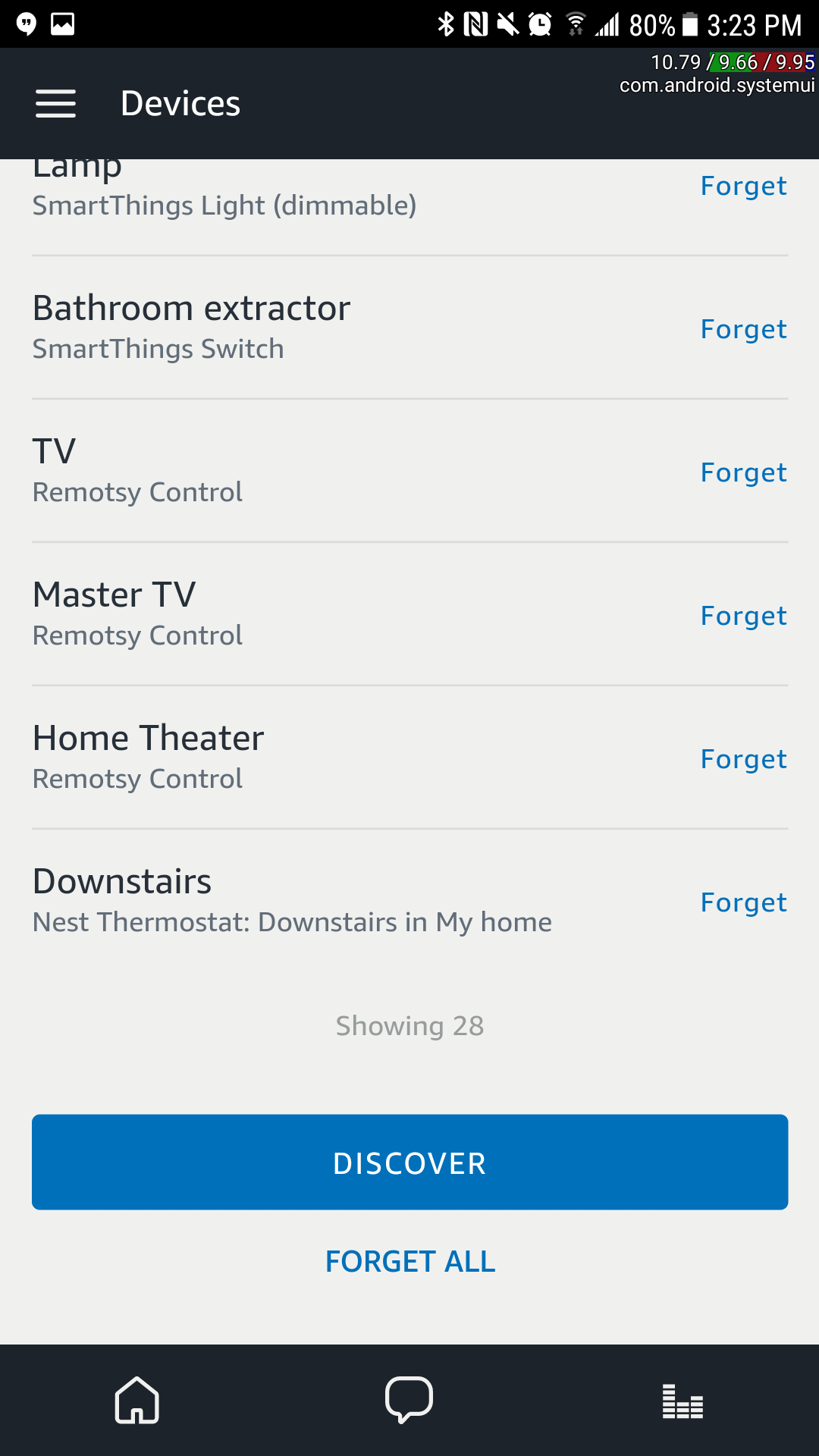 8.- With the skill enabled and your account linked, go to smart home and then devices. Go to the button of the list and click the button "Discovery," this will tell Alexa to start the discovery process and ask Remotsy for the controls, wait a few minutes and you will see your available controls on the list.